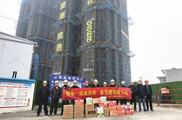 集團領導分組慰問了S22天天高速安慶至潛山段、長風港鐵路專用線、皖河新港一期、望湖攬勝等8個項目部的一線職工。每到一處,集團領導都向一線職工送上慰問品,感謝他們一年來的辛勤付出,并與一線職工親切交談,詢問他們的健康狀況及生活現(xiàn)狀,對他們在各自崗位上辛勤工作、為企業(yè)發(fā)展做出的積極貢獻給予充分肯定,勉勵大家在新的一年里立足崗位,拼搏進取,再創(chuàng)佳績。領導的問候和祝福讓一線職工備受鼓舞,大家紛紛表示,一定要以更加飽滿的工作熱情投入到工作中,堅守崗位,扎實工作,為集團高質量發(fā)展作出自己的貢獻。