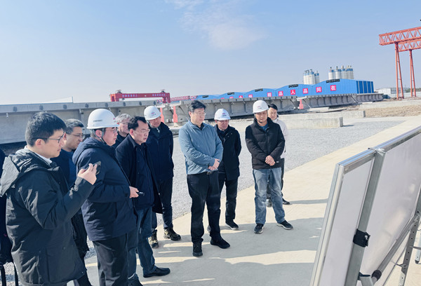在安慶港長(zhǎng)風(fēng)港區(qū)鐵路專用線項(xiàng)目制梁鋪架基地,調(diào)研組一行現(xiàn)場(chǎng)了解項(xiàng)目整體進(jìn)展,詳細(xì)詢問建設(shè)資金狀況、項(xiàng)目施工進(jìn)度、燃?xì)夤芫€遷改以及設(shè)計(jì)指標(biāo)等情況。