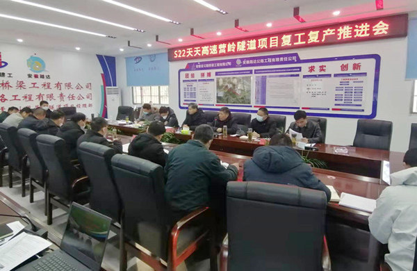1月30日上午,安通高速公司在 S22天天高速營嶺隧道項(xiàng)目部召開復(fù)工復(fù)產(chǎn)推進(jìn)會(huì)。會(huì)議由市交控集團(tuán)總工程師丁振宇主持,集團(tuán)公司黨委委員、副總經(jīng)理孫曉翔出席會(huì)議。